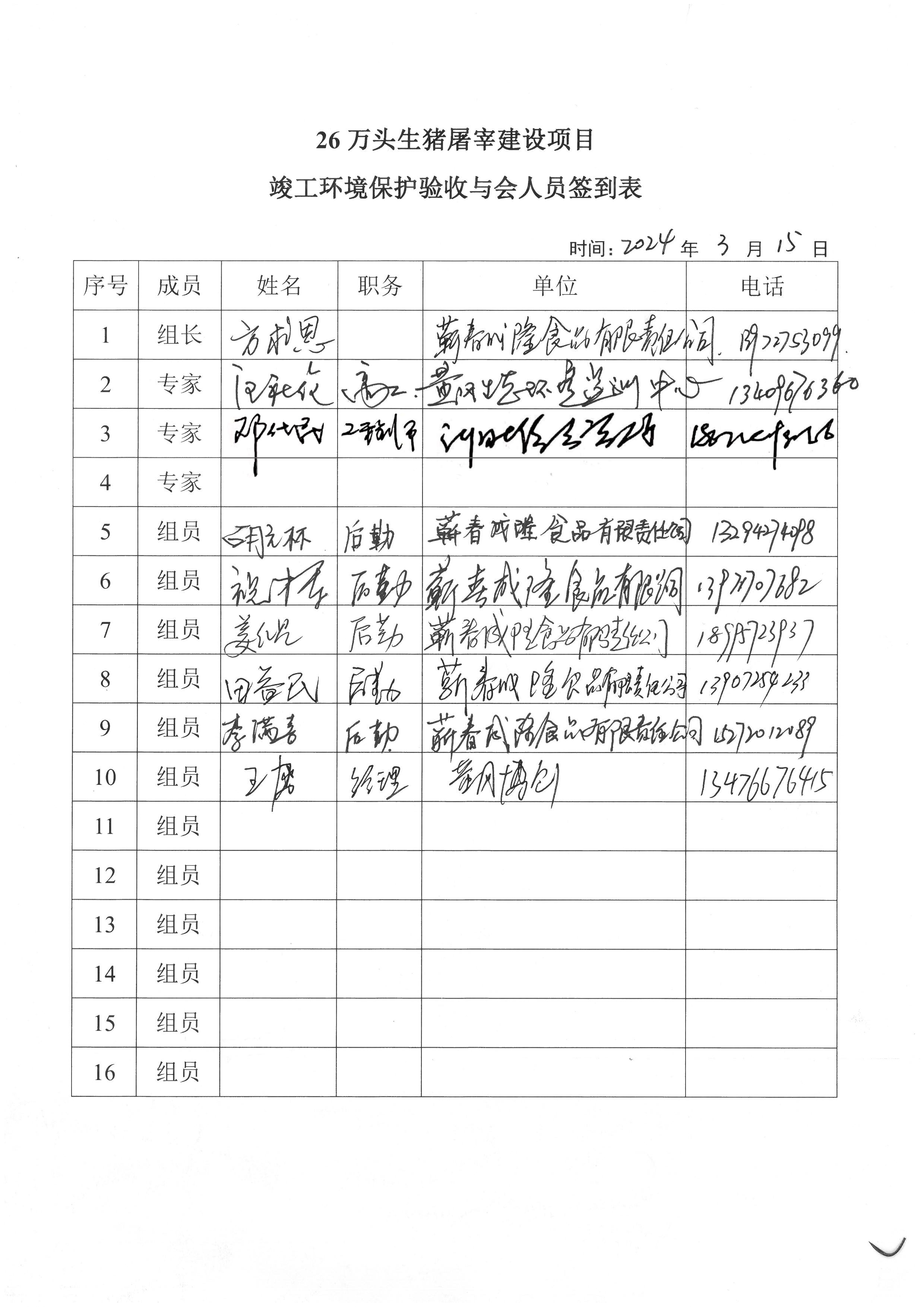 2024年3月15日,蘄春成隆食品有限責任公司在黃岡市蘄春縣主持召開了《26萬頭生豬屠宰建設項目竣工環(huán)境保護驗收監(jiān)測報告》技術評估會。