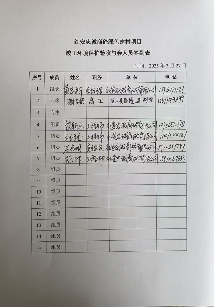 2025年3月27日,紅安忠誠商砼有限公司在黃岡市紅安縣主持召開了《紅安忠誠商砼綠色建材項目竣工環(huán)境保護驗收監(jiān)測報告表》技術評估會。