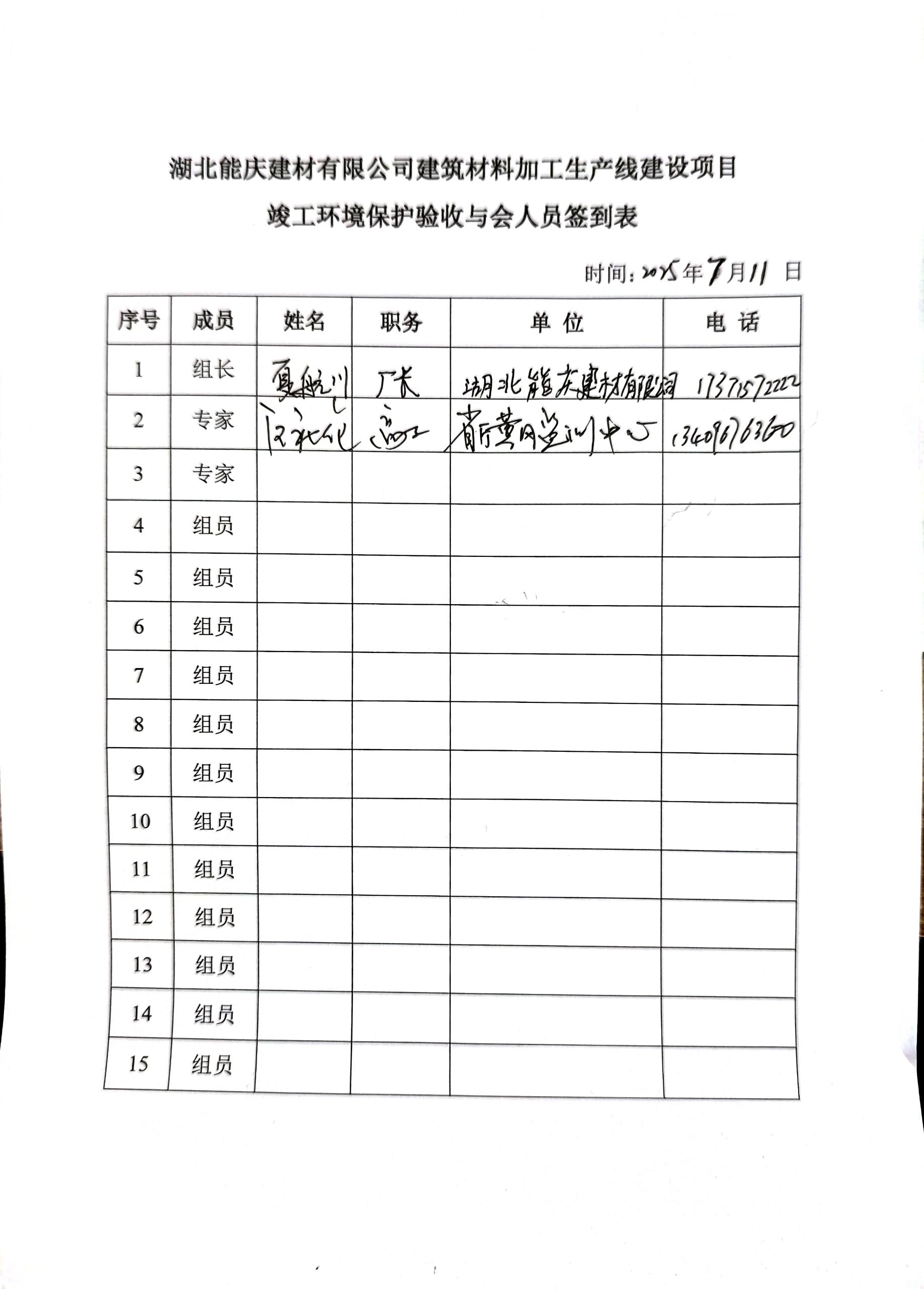 2025年7月11日,湖北能慶建材有限公司在黃岡市黃州區(qū)主持召開了《湖北能慶建材有限公司建筑材料加工生產(chǎn)線建設(shè)項(xiàng)目竣工環(huán)境保護(hù)驗(yàn)收監(jiān)測報告表》技術(shù)評估會。